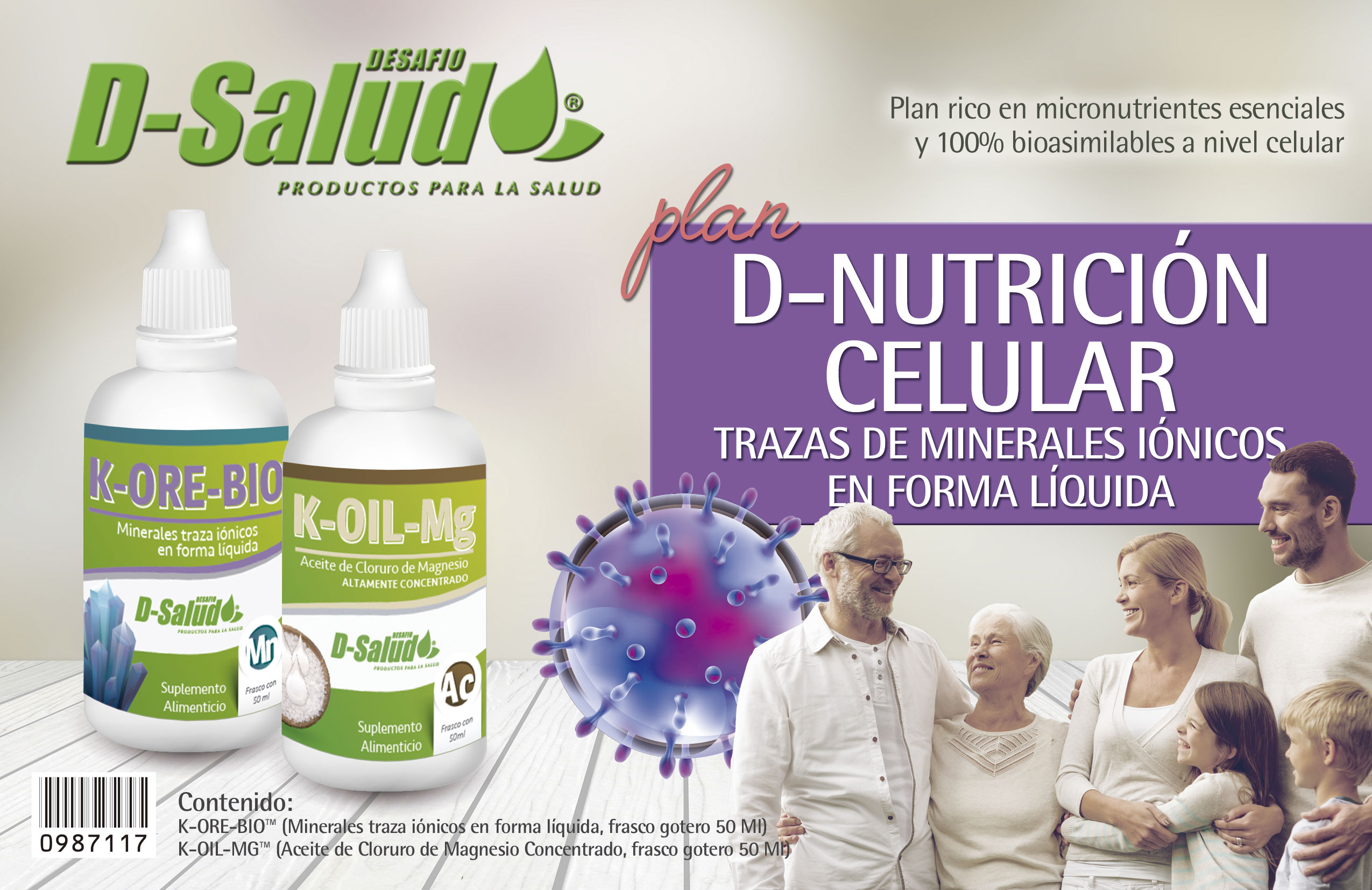 El complemento ideal a esta nutrición de trazas minerales biocompatibles, para reforzar la absorción directa e instántanea a nivel celular, es el aceite de magnesio altamente concentrado en gotas K-OIL-MG™. El magnesio es de vital importancia para más de 300 procesos en nuestro organismo, pero no recibimos suficiente de él. La mayoría ignoramos la importancia de minerales como el magnesio que, combinado con otros elementos, puede llegar a convertirse en la más poderosa arma para potenciar la salud.