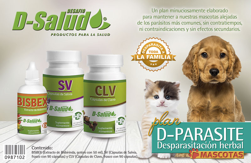 Consumen nutrientes, roban vitalidad e intoxican con sus excreciones. Eliminar parásitos trae el beneficio inmediato de recuperación de cualquier patología. Contar con una receta herbal que elimine no menos de 120 microrganismos más comunes y sin contraindicaciones, es un regalo de la naturaleza sin precedentes. Una combinación poderosa que convertirá a su mascota en plena vitalidad en pocos días brindándole la gran ventaja de no dejar residuos tóxicos, como lo hacen los medicamentos tradicionales para tratar estas infecciones.